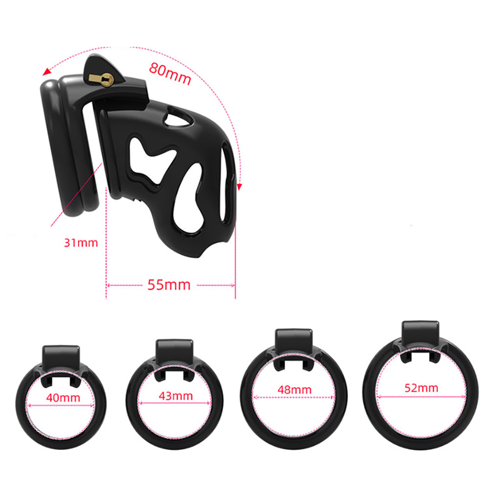 ⛓️ Cage de Chasteté Homme Noire en Polycarbonate Rigide – 4 Anneaux Ajustables – Verrou Intégré
