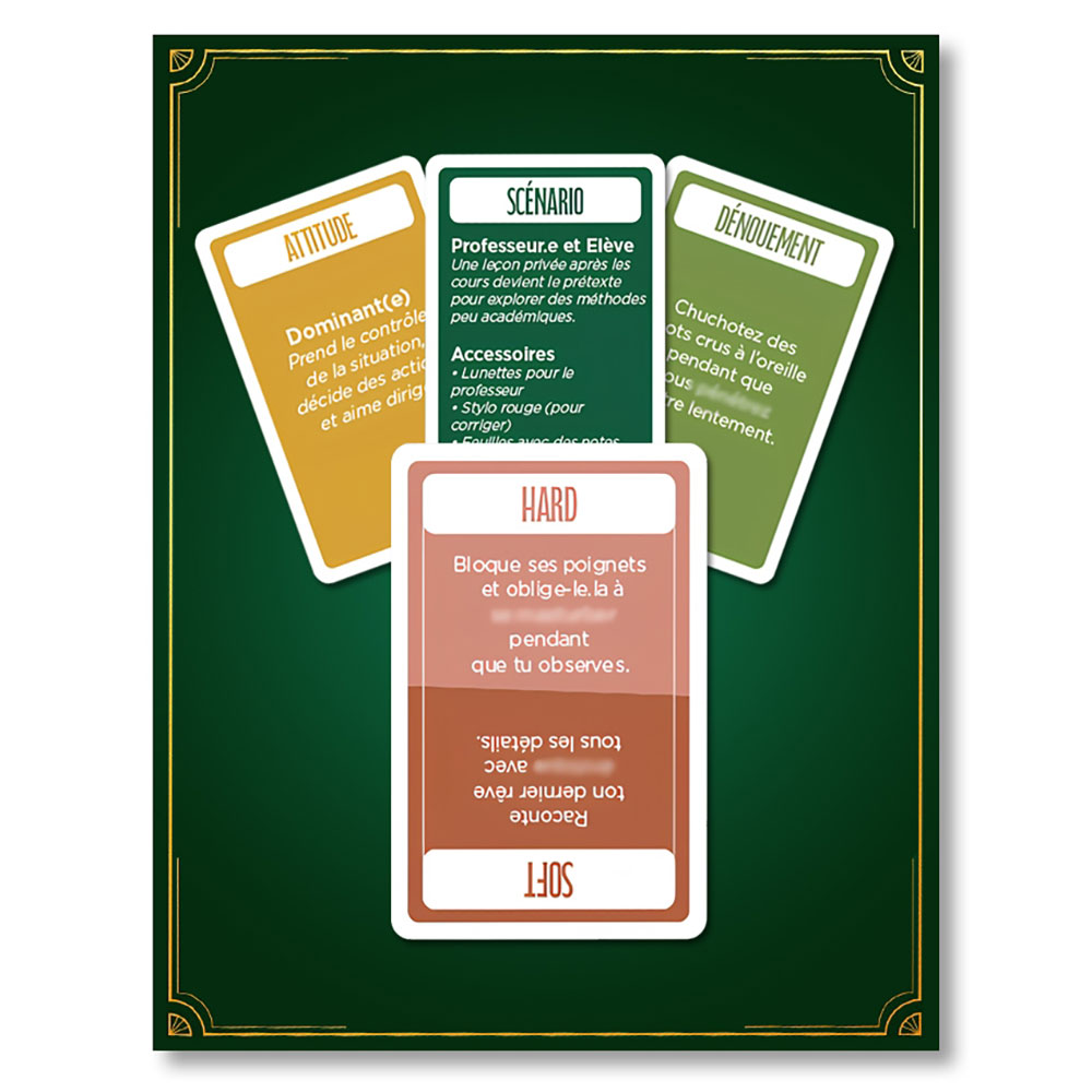 Les cartes coquines sont bien dosées, même si on a dû surmonter un peu notre timidité au départ. Ils auraient pu ajouter quelques accessoires de base.»