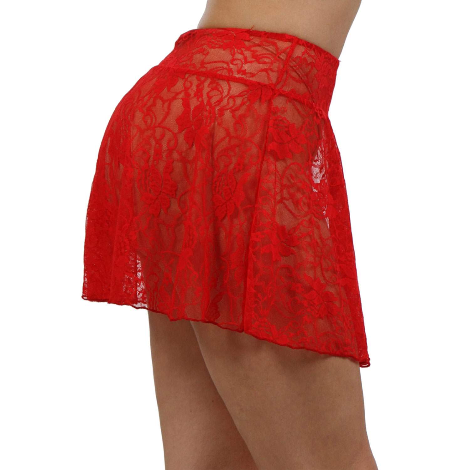 💡 En bref : mini-jupe rouge | dentelle florale | coupe légèrement évasée | transparence | ceinture élastique | lingerie visible | clubwear