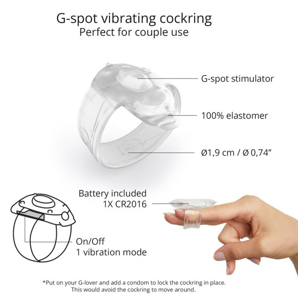 Le G-Lover est un cockring vibrant en élastomère souple et extensible, pensé pour stimuler aussi bien le point G chez la femme que le point P chez l’homme.
