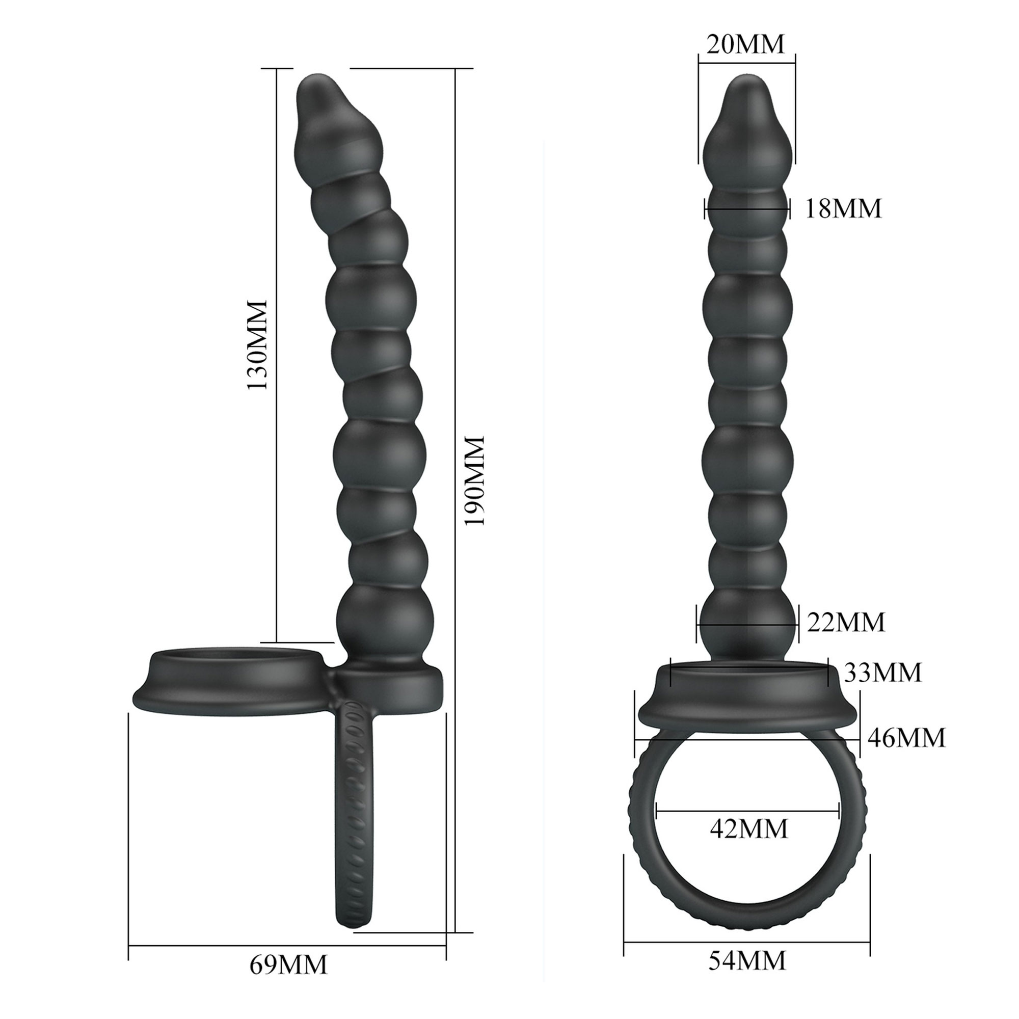 💡 En bref : cockring double anneau | pénis 3,3 cm | testicules 4,2 cm | chaîne anale 13 cm | boules progressives 1,8 à 2,2 cm | silicone souple extensible