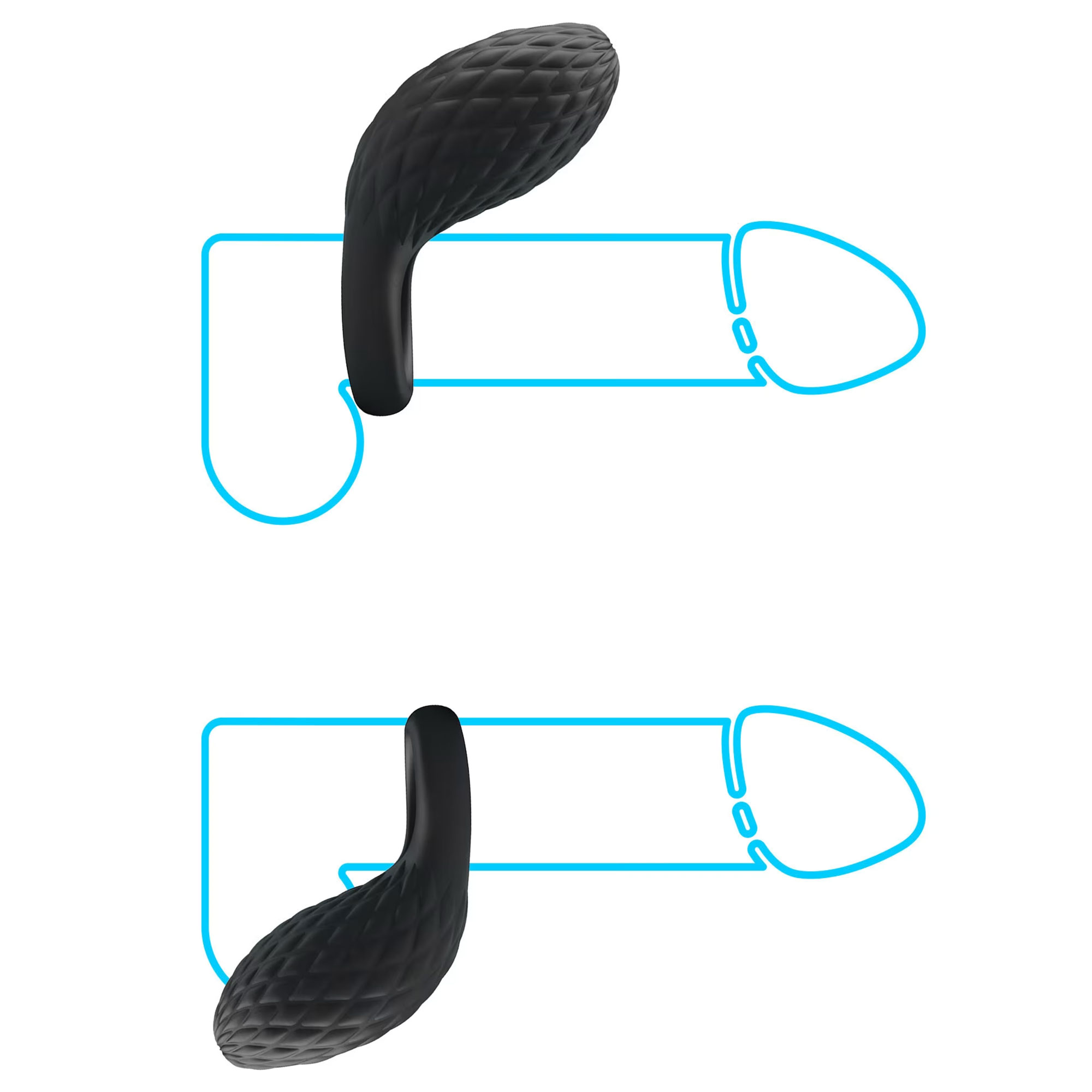 Un cockring qui joue sur deux tableaux : tête vers le haut, il vise le clitoris à chaque mouvement ; tête vers le bas, il réveille périnée ou testicules.
