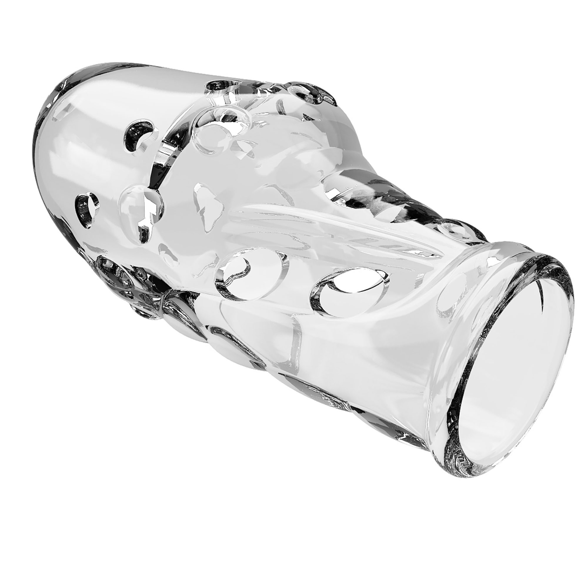 Cette gaine pénienne transparente est pensée pour ceux qui recherchent un effet visuel et sensoriel à la fois. En enveloppant le pénis dans une matière souple et extensible, elle crée une impression de volume et de longueur accrus, tout en conservant une sensation naturelle au toucher.